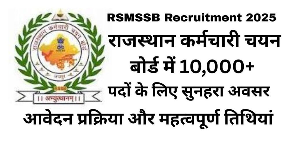 RSMSSB Recruitment 2025 राजस्थान के युवाओं के लिए सरकारी नौकरी का एक शानदार अवसर लेकर आई है। राजस्थान अधीनस्थ एवं मंत्रालयिक सेवा चयन बोर्ड (RSMSSB) ने विभिन्न विभागों में हजारों रिक्त पदों की घोषणा की है। यह लेख आपको RSMSSB Recruitment 2025 की संपूर्ण जानकारी, पात्रता मापदंड, आवेदन प्रक्रिया और परीक्षा की तैयारी के बारे में विस्तृत मार्गदर्शन प्रदान करेगा।